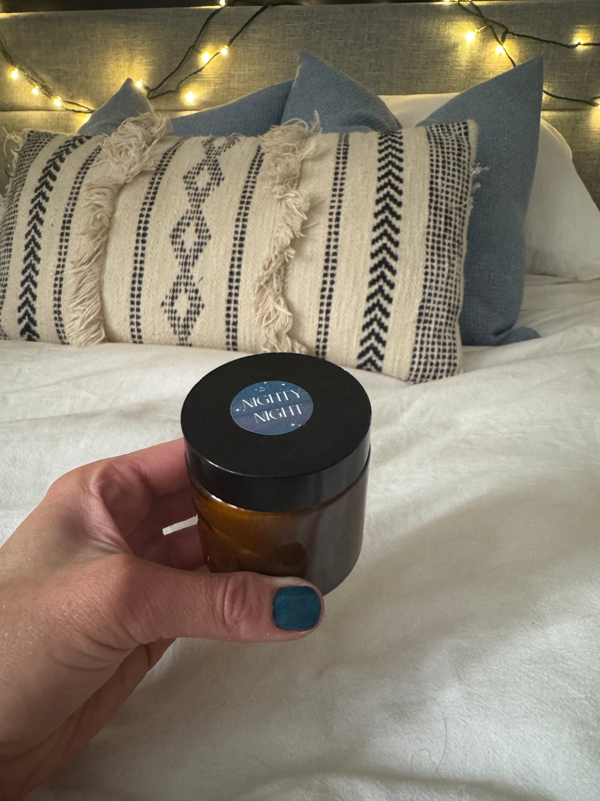 Nighty Night Ingredients:Lavandula Angustifolia (Lavender) Oil, Origanum Majorana (Sweet Marjoram) Flower/Leaf/Stem Oil, Citrus Nobilis (Green Mandarin) Peel Oil, Cedrus Atlantica (Atlas Cedarwood) Wood Oil, Pogostemon Cablin (Patchouli) Leaf Oil, Salvia Sclarea (Clary Sage) Oil, Anthemis Nobilis (Roman Chamomile) Flower Oil, Tanacetum Annuum (Blue Tansy) Flower/Leaf/Stem Oil